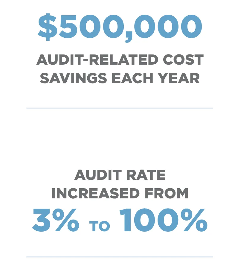 The Department was able to reduce audit-related costs by $500,000 each year and increase staff efficiency, ultimately using fewer resources to manage the new system. Two staff members were able to audit 100% of all healthcare professionals, compared to the previous 3%. The Department’s Prosecution Services Unit was able to focus on higher-priority cases in the healthcare system. CE Broker also provided a support center staffed with experts trained on each profession’s rules and regulations, which alleviated the number of licensee inquiries to the board.